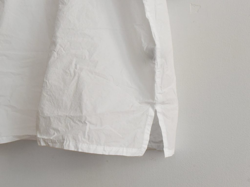 Simple T-shirt made in Italy from 100% cotton. The fabric has a lightweight, crisp texture similar to a shirt material. Designed with a relaxed silhouette and clean, minimal shape. Features a round neckline and short sleeves with a slightly structured feel. Side slits at the hem allow for ease of movement and layering. Available in Anthracite, Mauve, White, and Pebble.