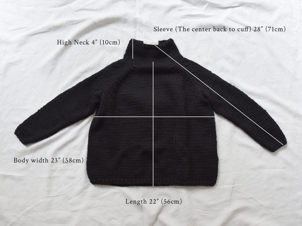 Size OS: High neck 4″ (10cm), Sleeve (the center back to cuff) 28″ (71cm), Length 22″ (56cm), Body width 23″ (58cm)
