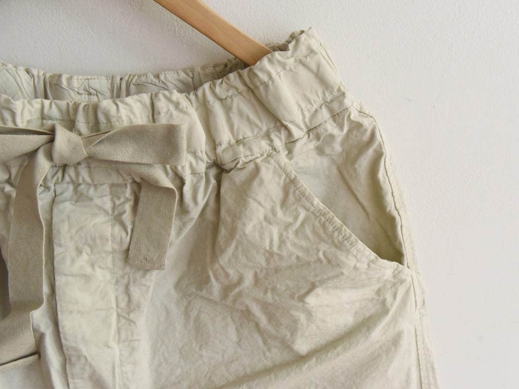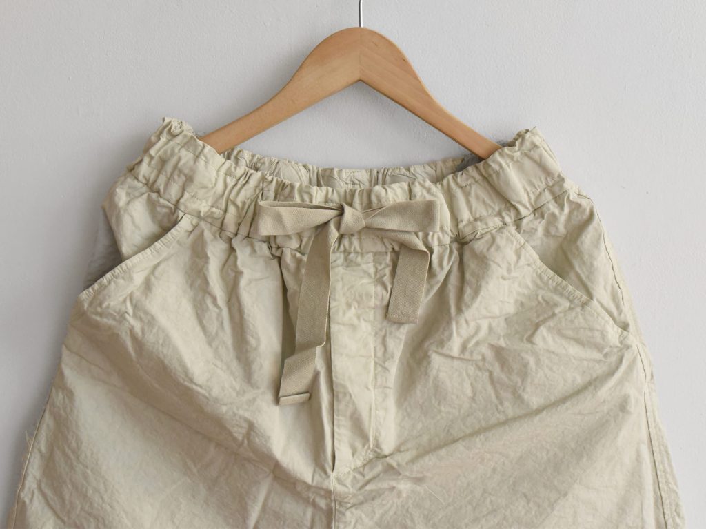Cotton shorts made in Italy from a slightly heavier, structured fabric. Designed with an elastic waistband and a wide ribbon detail for subtle contrast and adjustability. Features two side pockets and two large back patch pockets. The silhouette is relaxed with a clean, minimal finish. Available in Black, Mauve, and Pebble.
