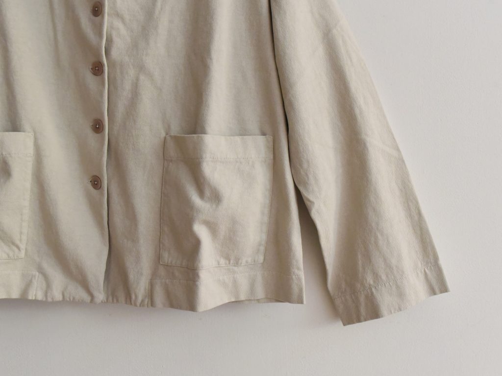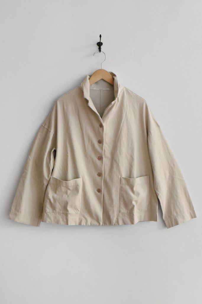 A relaxed cotton jacket crafted in Italy from a soft yet substantial fabric. Designed with a loose silhouette, it features two front patch pockets and a clean back without vents for a minimal, uninterrupted line. The slightly structured cotton maintains shape while remaining comfortable and easy to wear. Available in Pebble and Black.