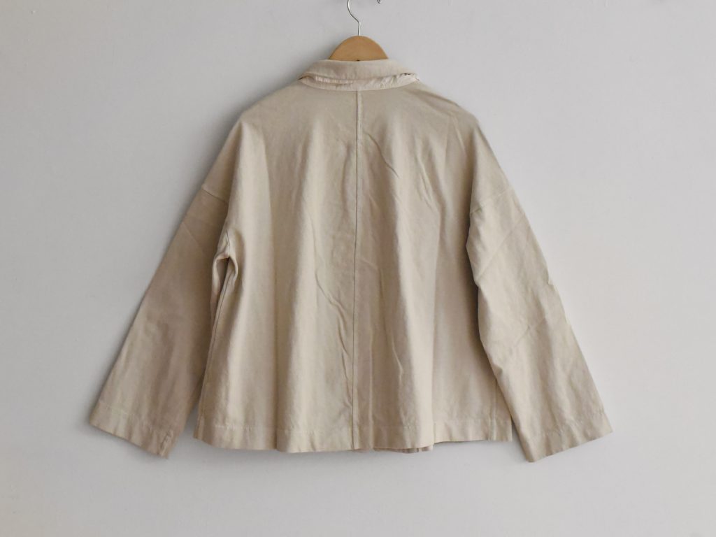 Size S: Center back to cuff 33″ (84 cm), Body width 21″ (53 cm), Length 25″ (64 cm).