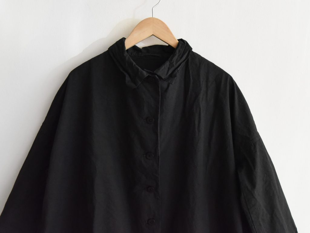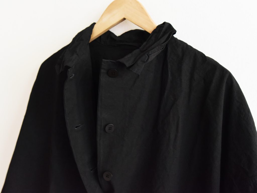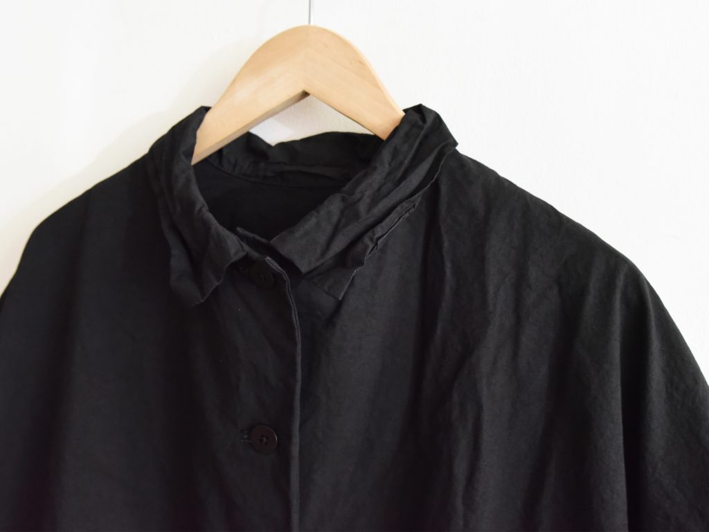 Easy coat made in Italy from 100% cotton. Lightweight fabric with a soft, slightly crisp texture. Designed in a simple A-line silhouette with a relaxed, oversized fit. Features a clean front button closure and a minimal collar. The wide body and drop shoulders create an effortless, airy shape suitable for layering.