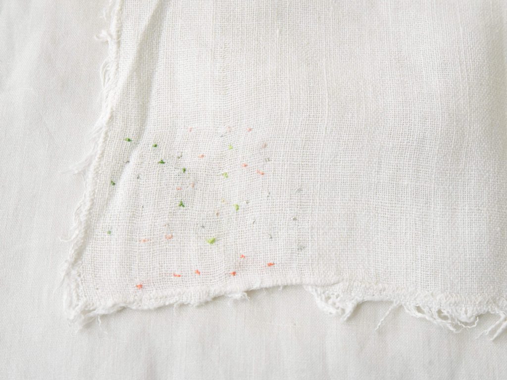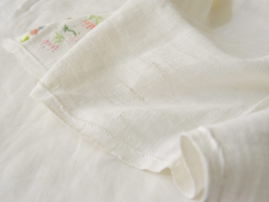 Each piece of line napkins may have imperfections that shall be considered characteristics that makes the object unique. It’s not a problem if the napkin gets wet, but there is a possibility of color fading, so please wash it separately. Additionally, we recommend covering the embroidered parts to prevent them from getting wet.