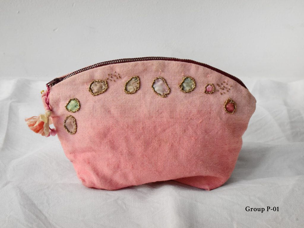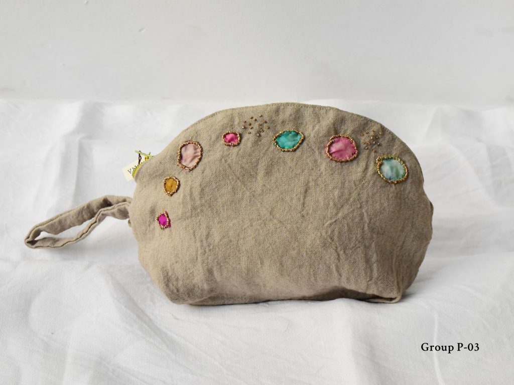 Antonia Rossi, Embroidered Linen Pouch with Micro Beads – Group P-6, 7, 8