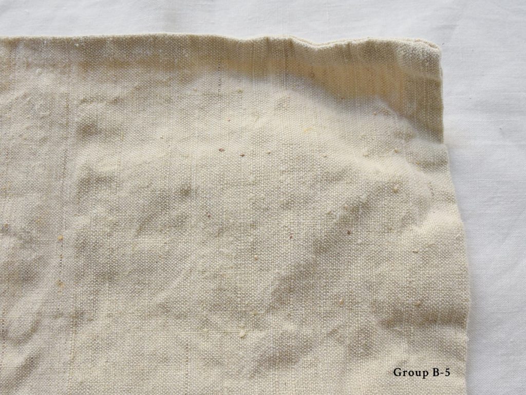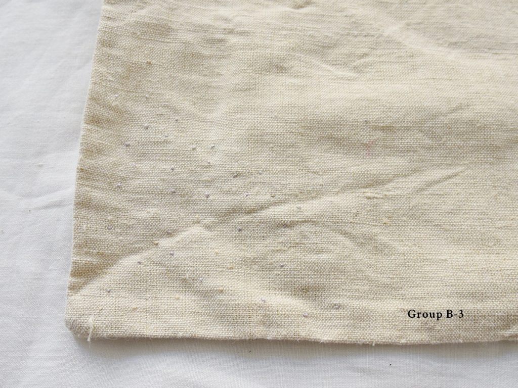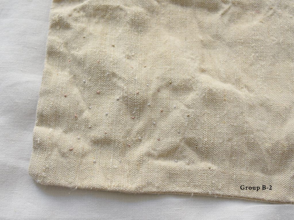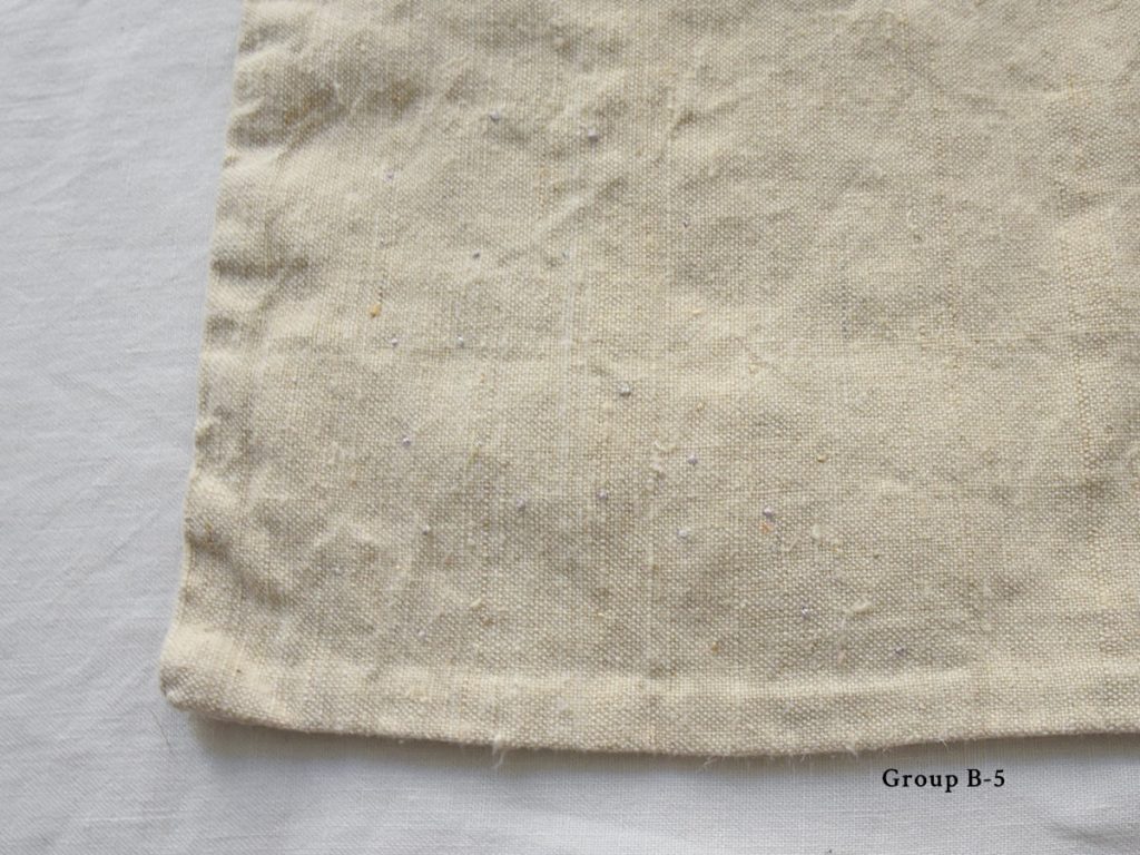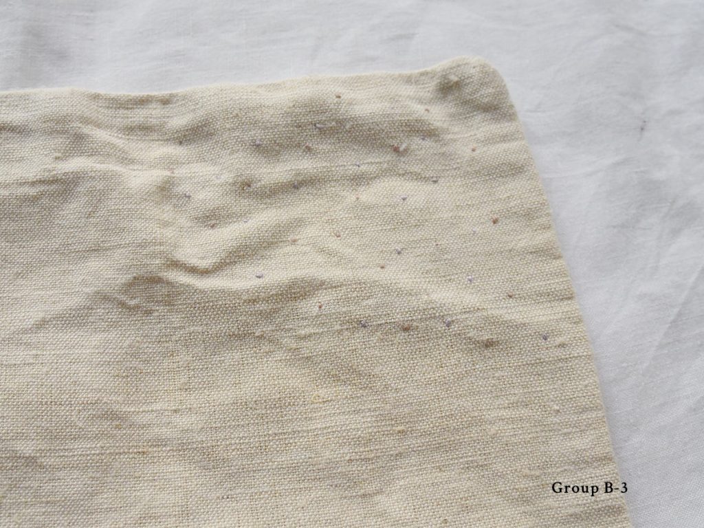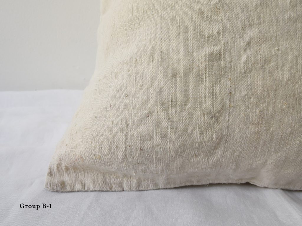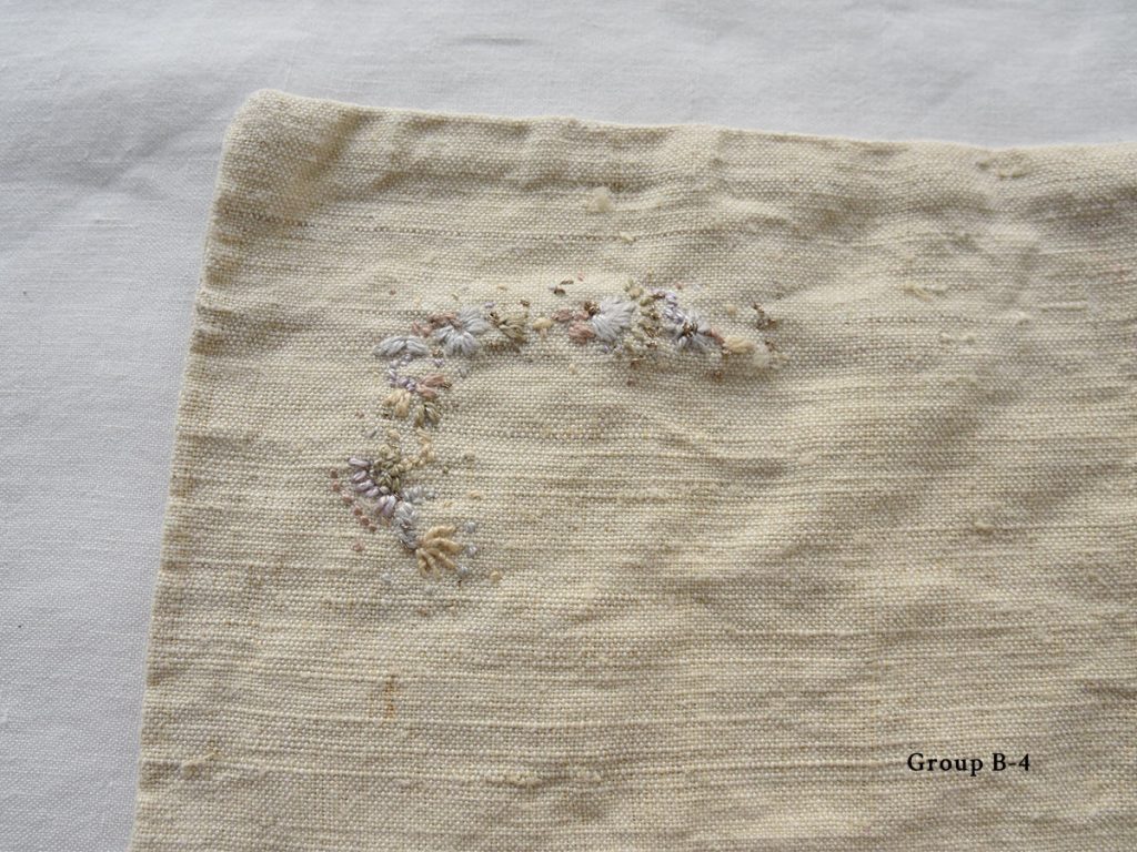 The linen pillow has flower-like embroidery on two corners and silver pastel dots on the other two corners. The back side is plain.