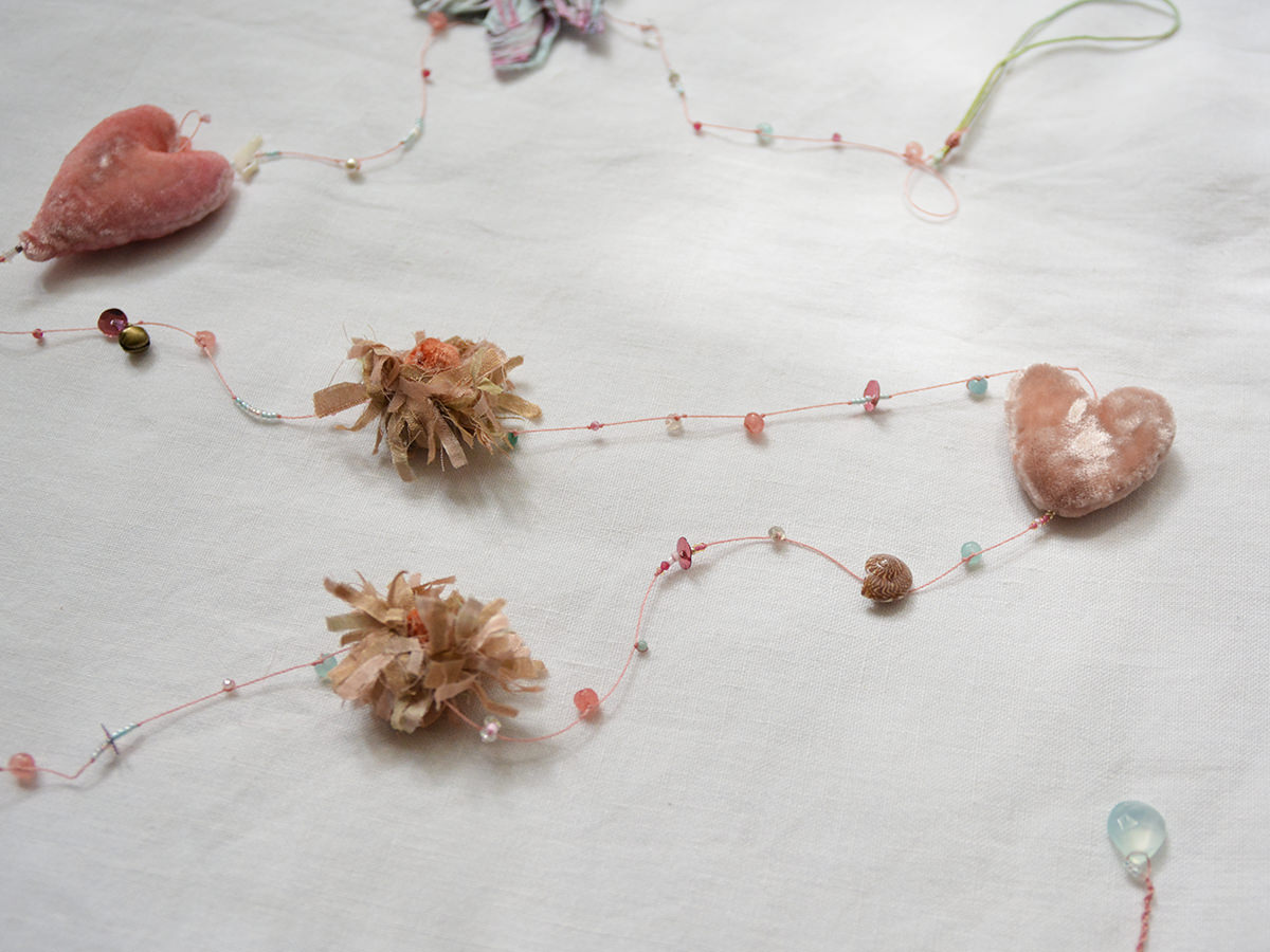Embroidered flowers with vintage fabric and vintage Venetian beads.