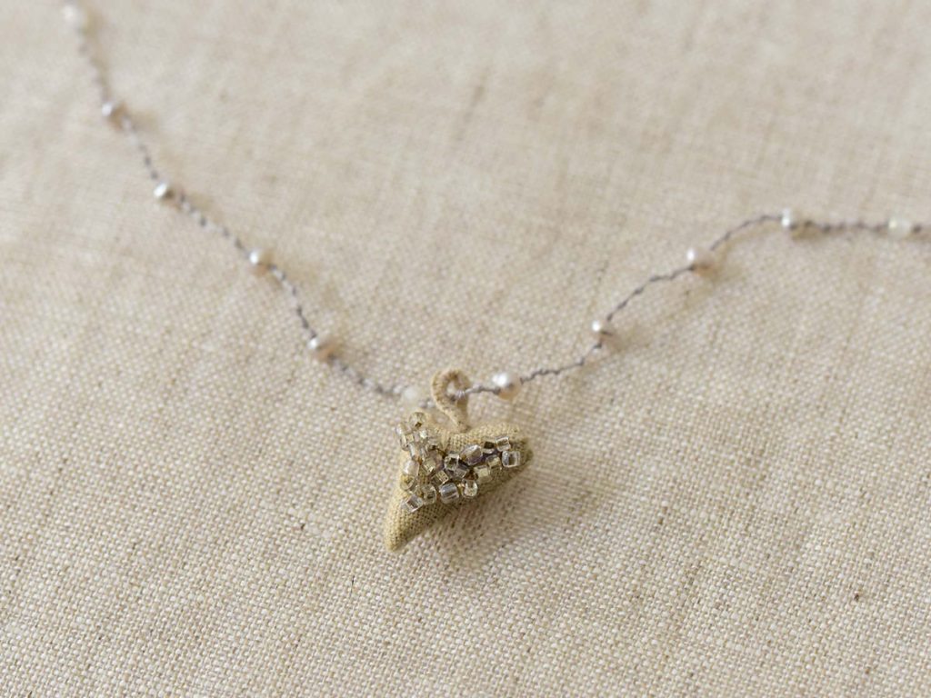 A delicate necklace crafted with Venetian micro beads, finished with a beige heart charm.