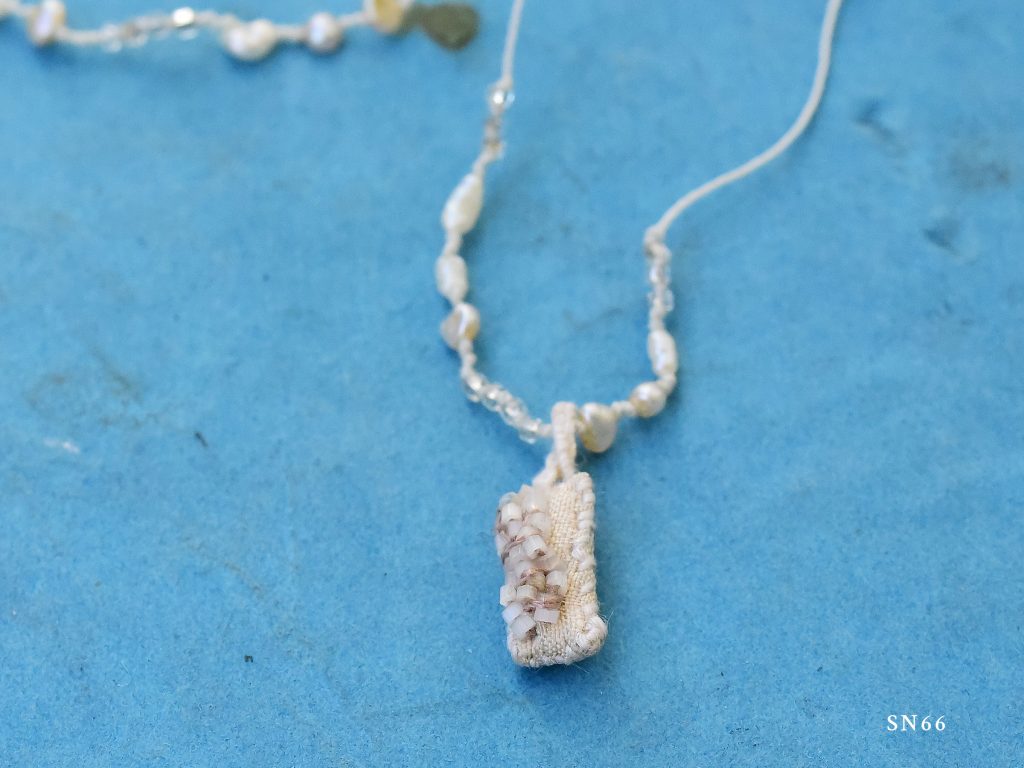 A delicate necklace crafted with Venetian micro beads, finished with a white charm.