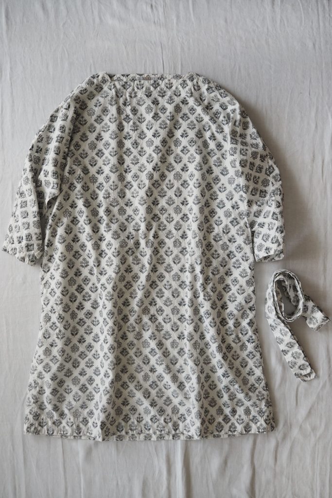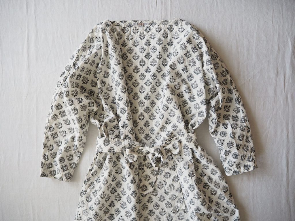 Size M: Sleeve (Center back to cuff) 30″ (76cm), Body width 27¾” (68cm), Length 43″ (109cm), Belt length 35½” (90cm)