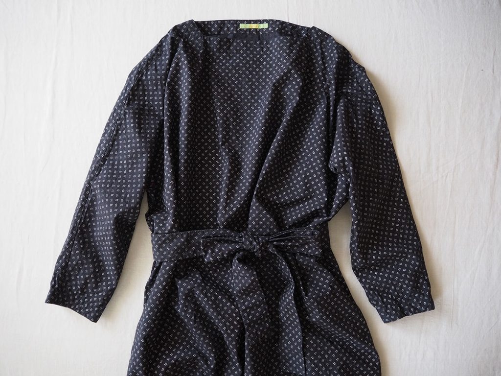 Size M: Sleeve (Center back to cuff) 30″ (76cm), Body width 27¾” (68cm), Length 43″ (109cm), Belt length 35½” (90cm)