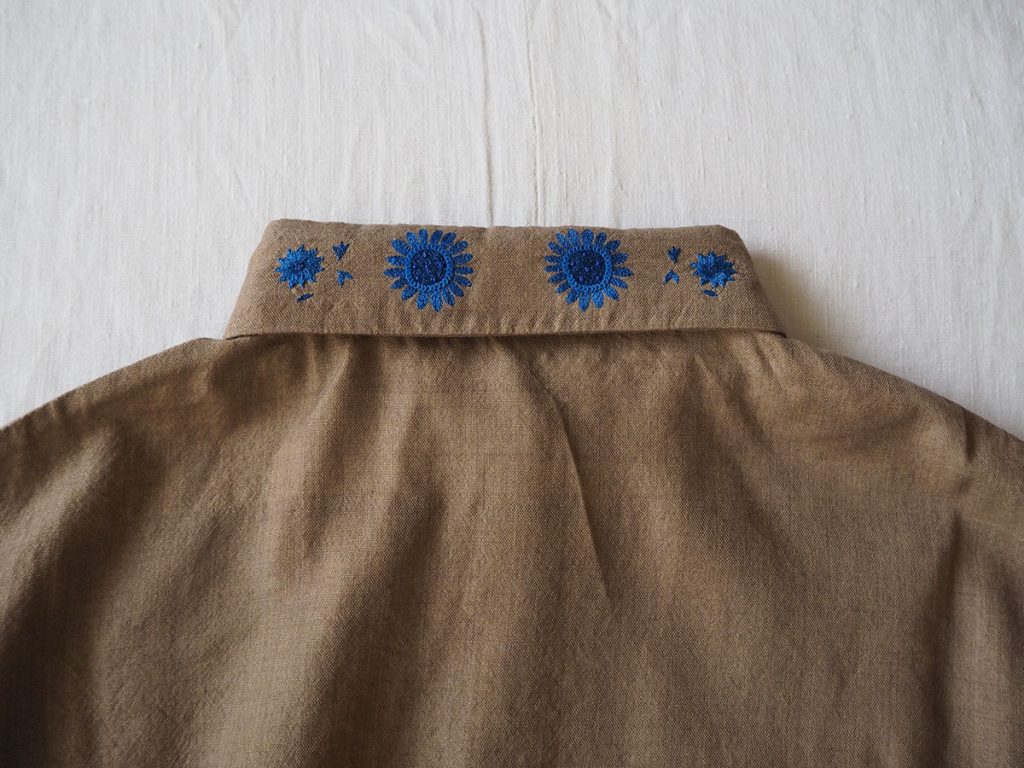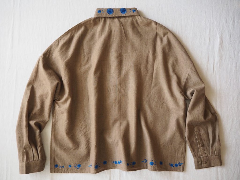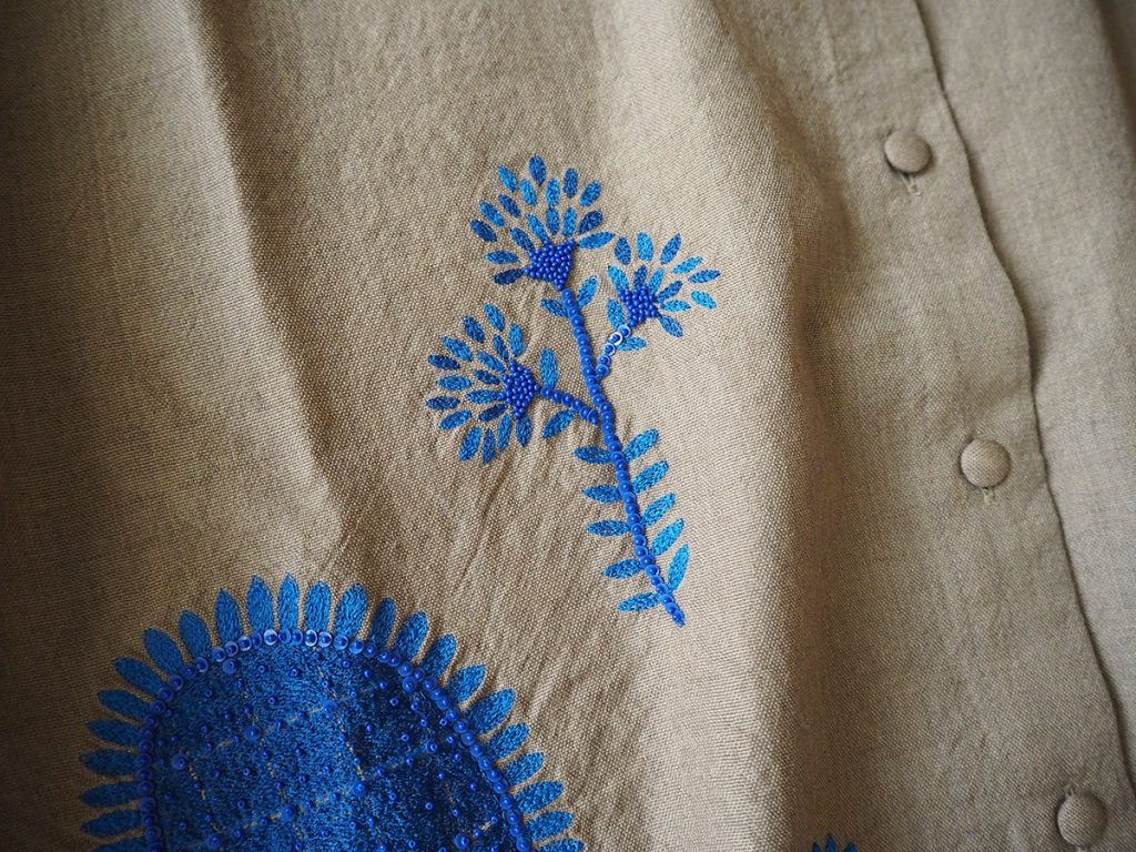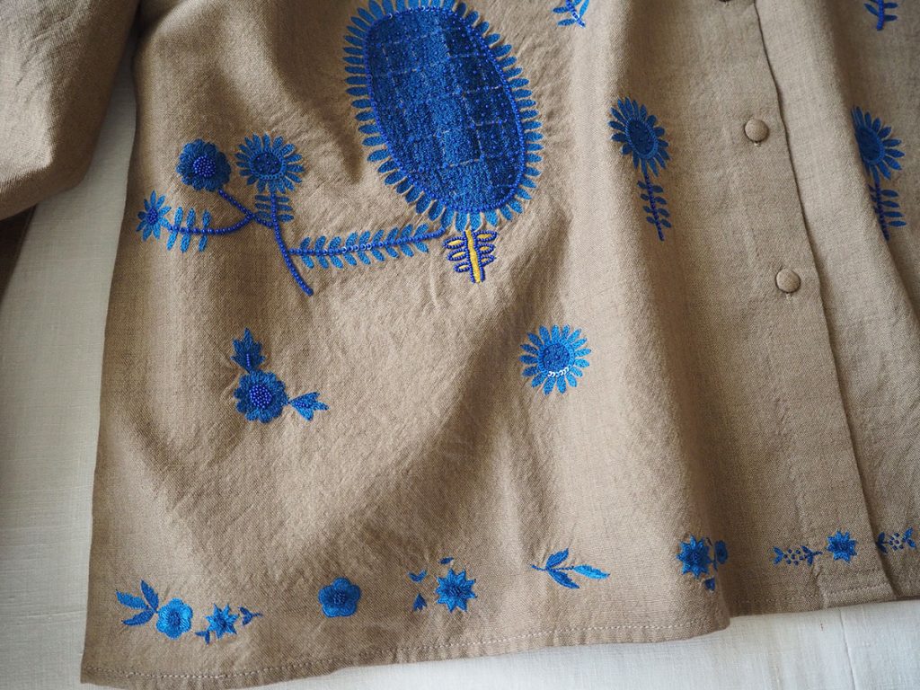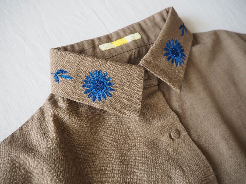 Sunflower embroidery on wool. Drop shoulder. Two side pockets.