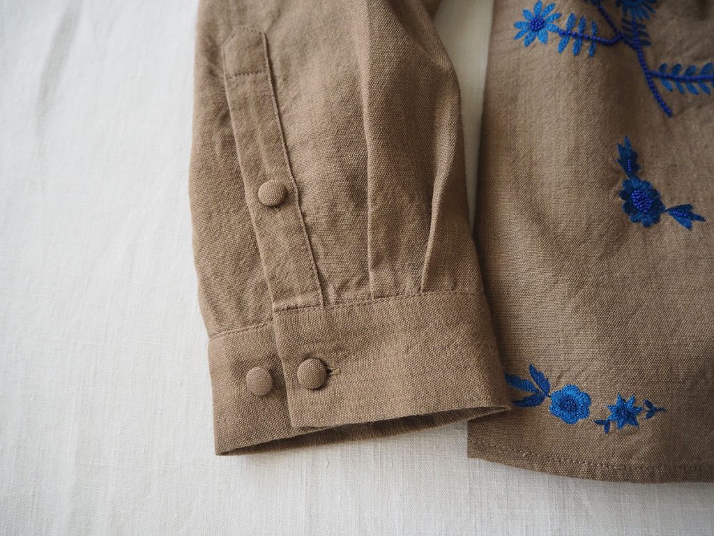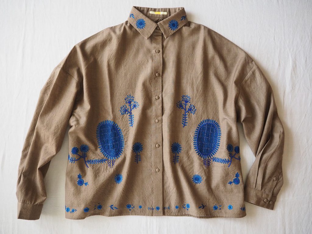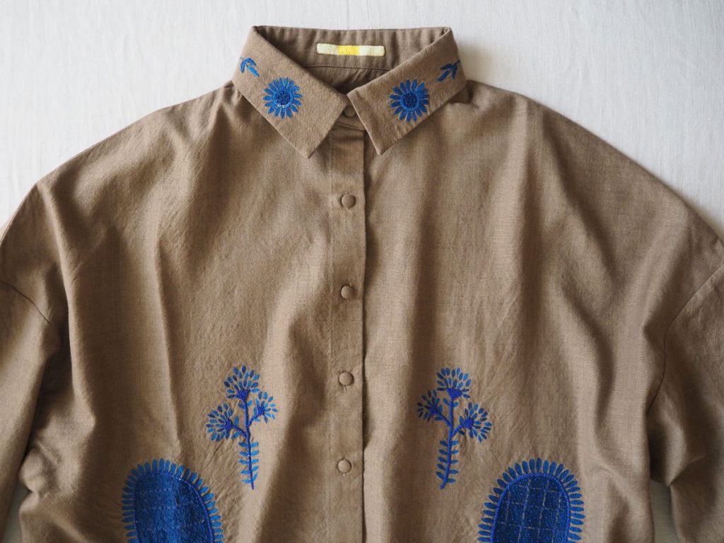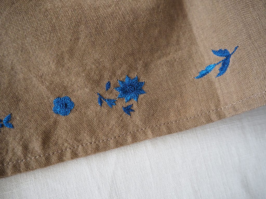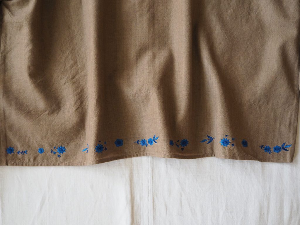 Sunflower embroidery on wool. Drop shoulder. Two side pockets.
