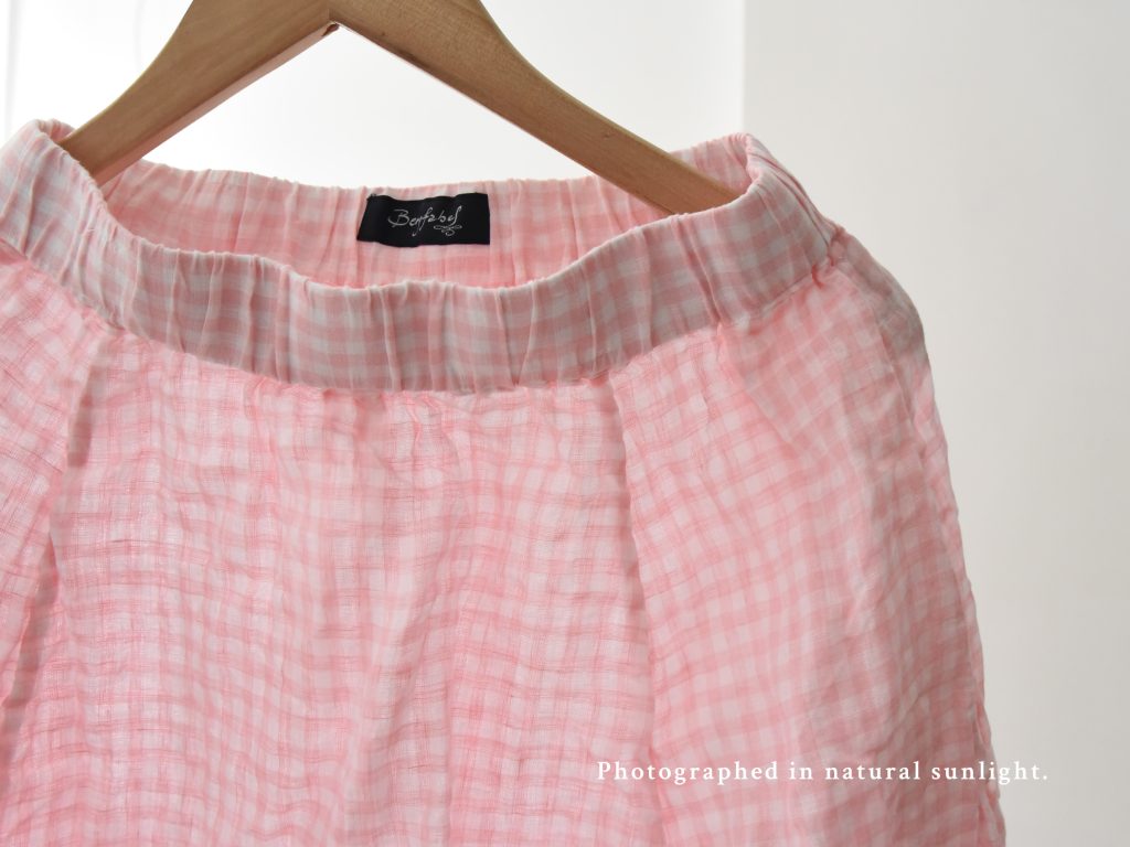 The Carla Skirt by Bergfabel is made in Italy from 100% linen in a soft pink check pattern. Designed with an elastic waistband and an airy, gathered silhouette, it offers a light and comfortable fit for everyday wear.