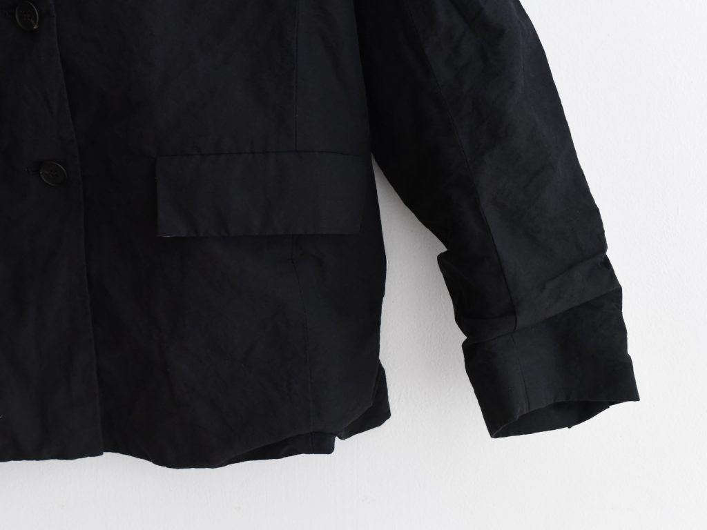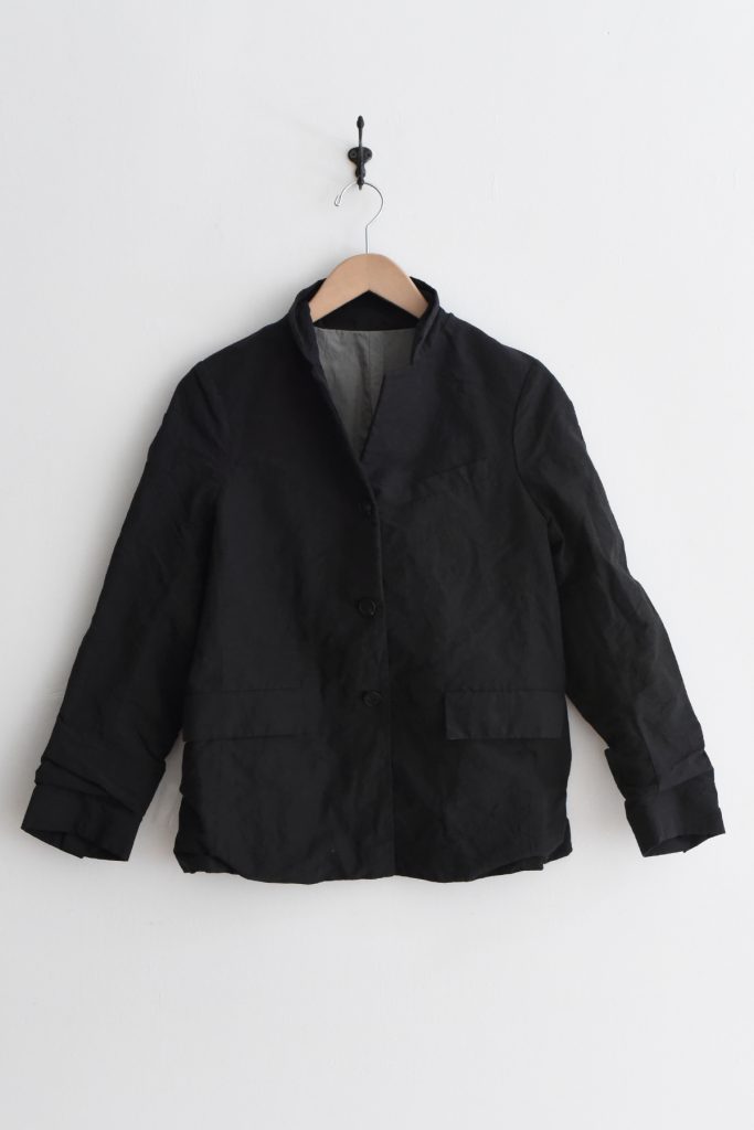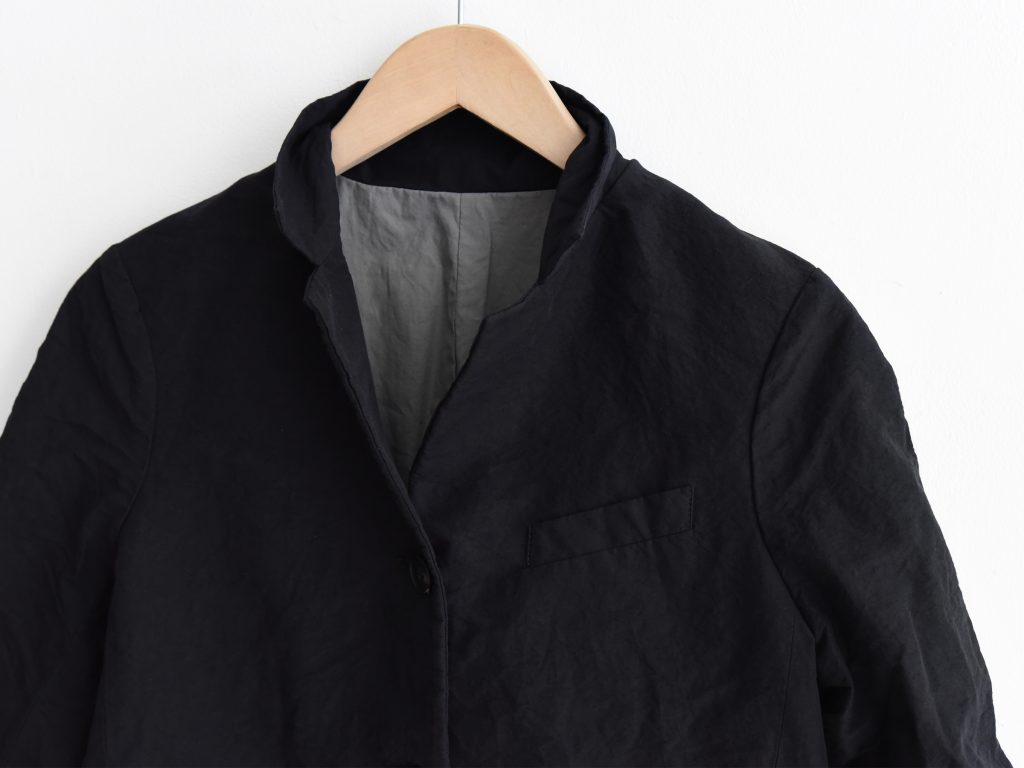 The Bergfabel Giulia Jacket is made in Italy from a cotton and linen blend in classic black. Designed with a relaxed silhouette, button front, and double vent detail.