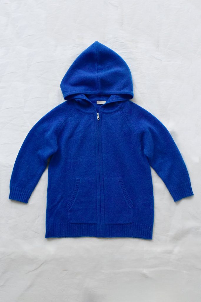 A soft children’s hoodie made from high-end 100% cashmere. Designed with a front zipper, hood, and a front pocket for everyday comfort.