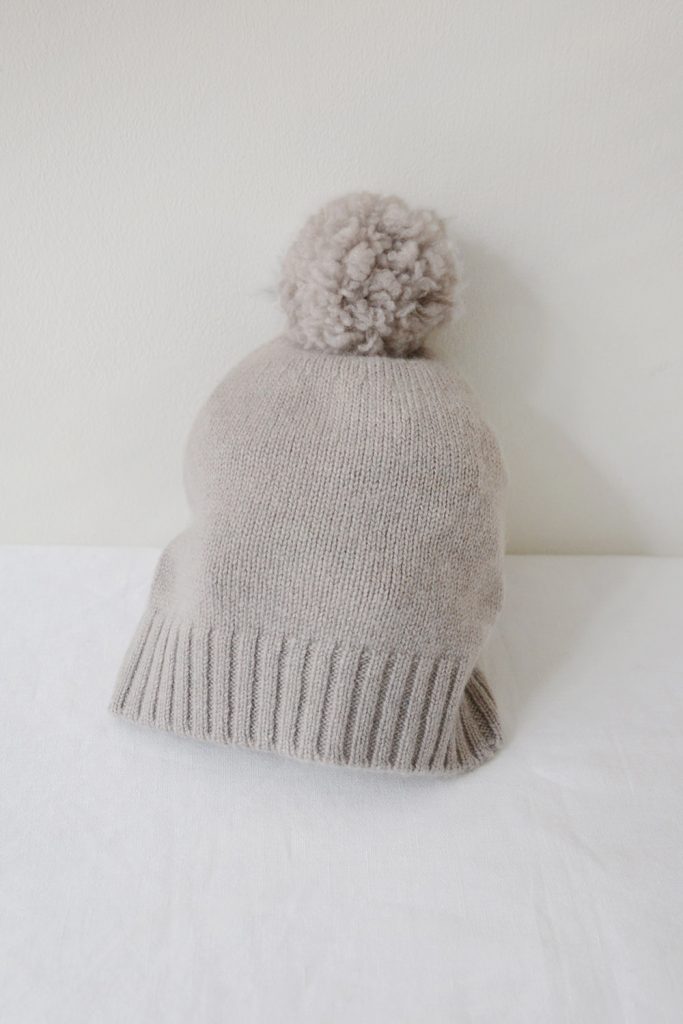 Made with silky soft and high quality cashmere, Makie’s fine knit “Cashmere Pompom Hat Gema” will surely keep your baby’s head warm in cold weather.