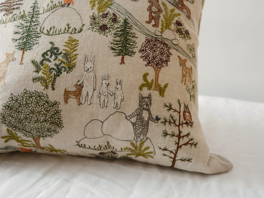 “Coral & Tusk creates spirited embroidered textiles for the home. Founded in 2007 by designer Stephanie Housley, Coral & Tusk’s creative process is a special alchemy of storytelling, illustration, and machine embroidery. Each Coral & Tusk design begins as an original pencil drawing by Stephanie and is then translated to cloth through a unique process that retains her hand. Crafted with artistry and imagination, a Coral & Tusk piece is sure to surprise and delight.” (https://coralandtusk.com/pages/about-us)