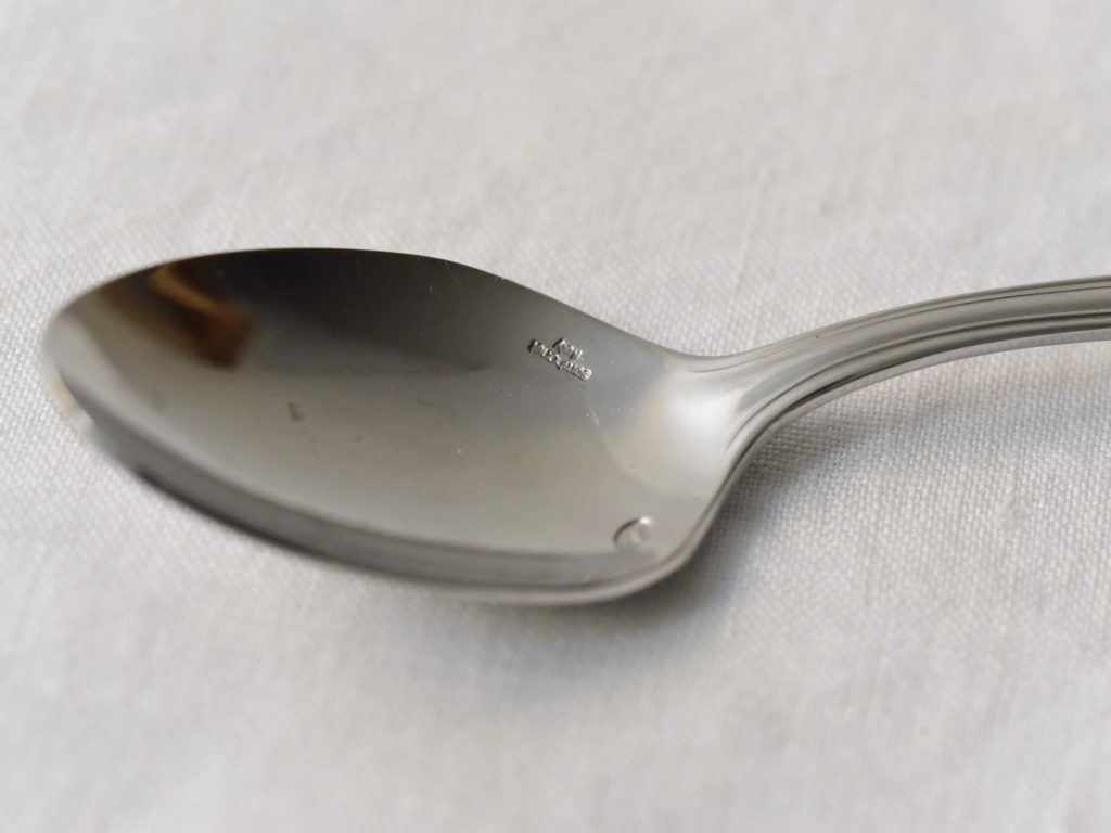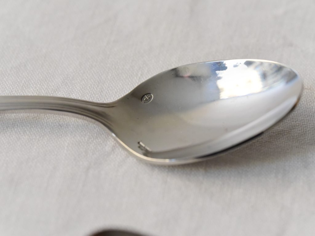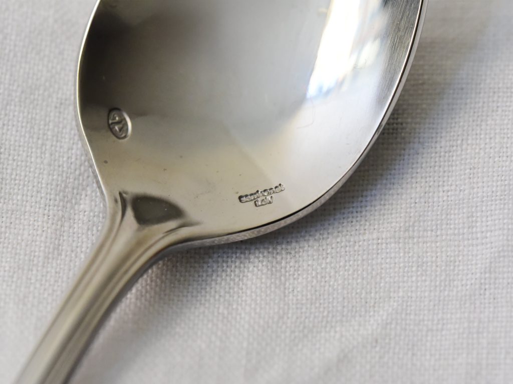 A beautifully crafted spoon by Sambonet, the historic Italian cutlery maker founded in 1856. Sambonet is celebrated for its timeless design and exceptional craftsmanship. Stamped “Sambonet Italy” with an EP (electroplated silver) mark. The handle features the timeless Filet pattern, a refined double-line detail inspired by traditional 18th-century European tableware.