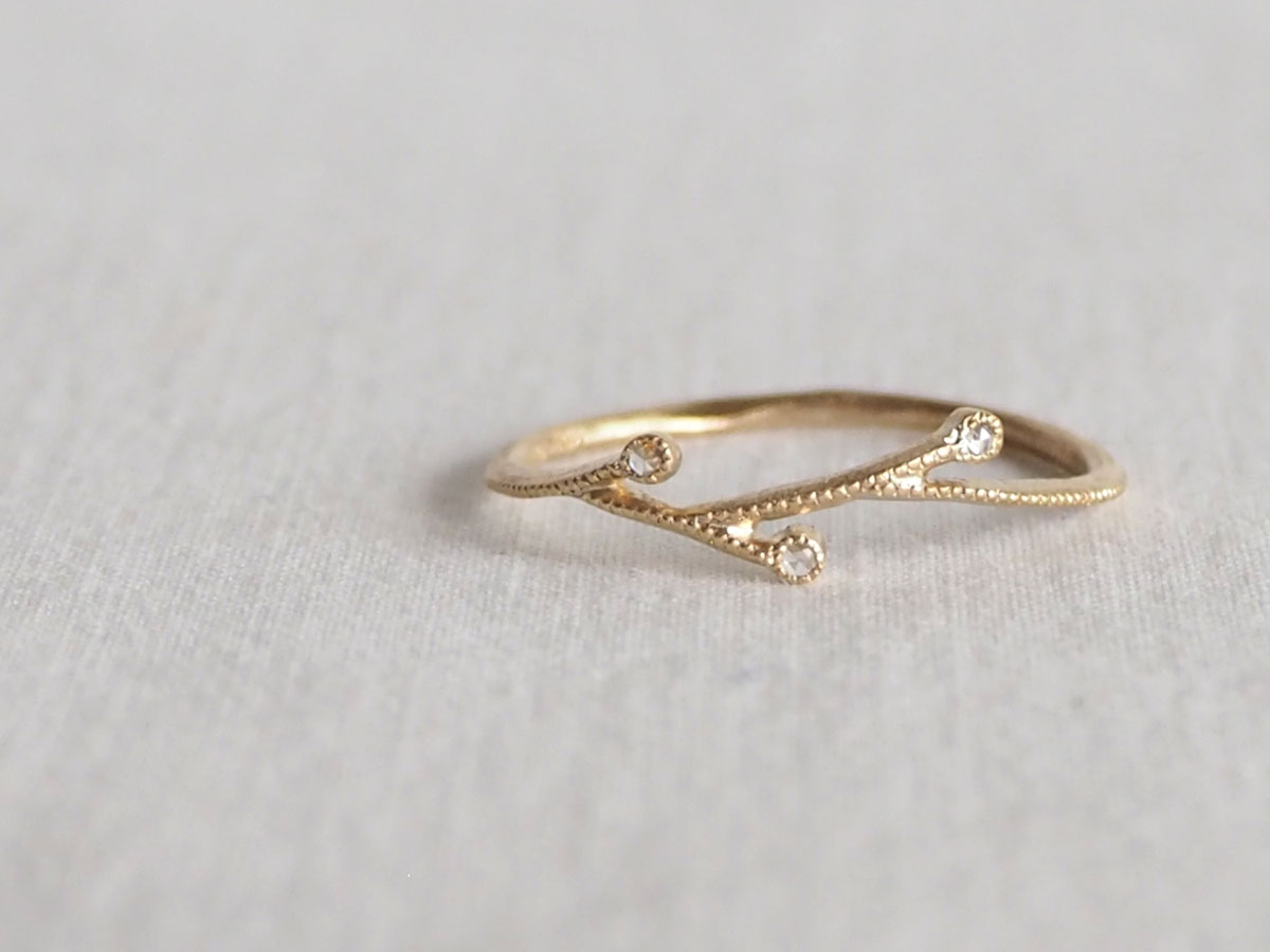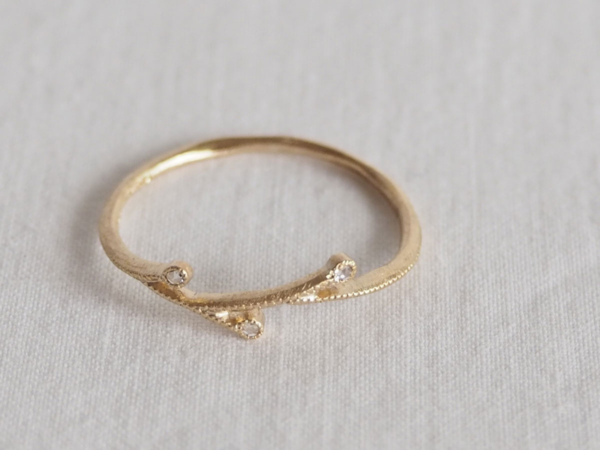 3 Diamonds, 10K. Handmade in Kobe, Japan.