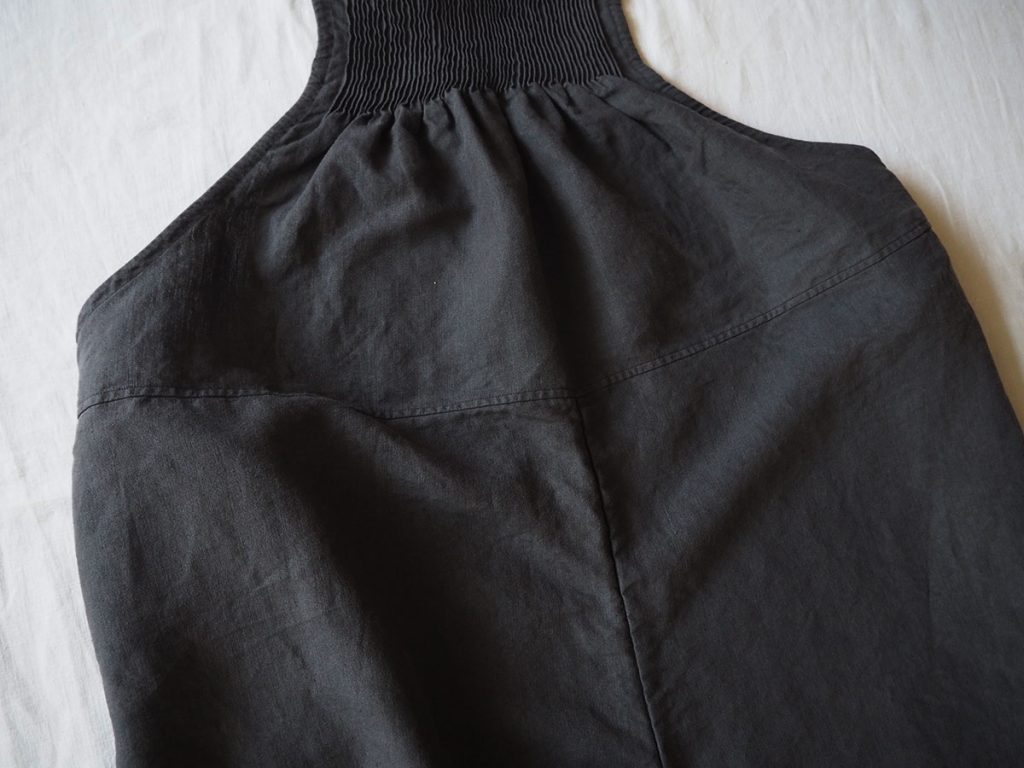 Free (One Size): Body circumference 60½” (154cm), Shoulder strap length 31½” (80cm), Inseam 26½” (67cm), Hem circumference: 14¼” (36cm), Length (excluding straps) 50″ (127cm)