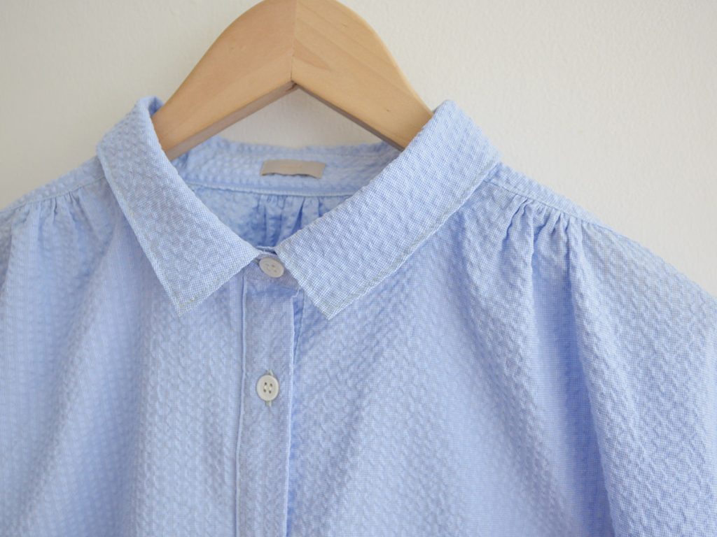 Seersucker fabric is a lightweight, breathable fabric with a crinkled texture.