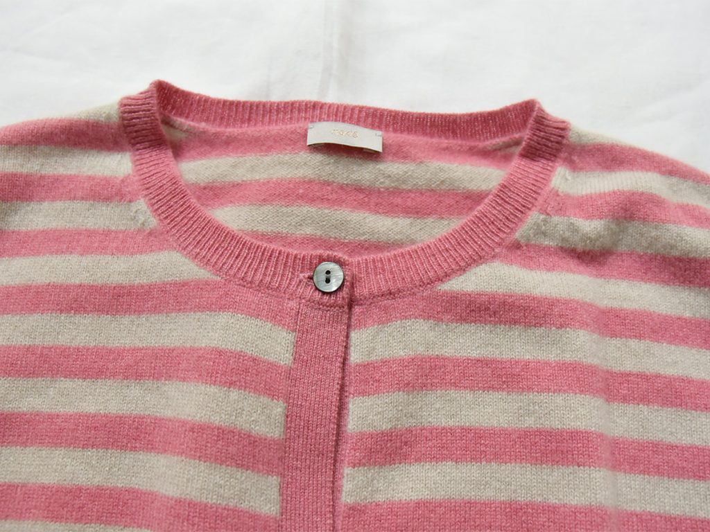 MAKIE, Cashmere Cardigan – Dusty Pink x Lt. Beige Stripe