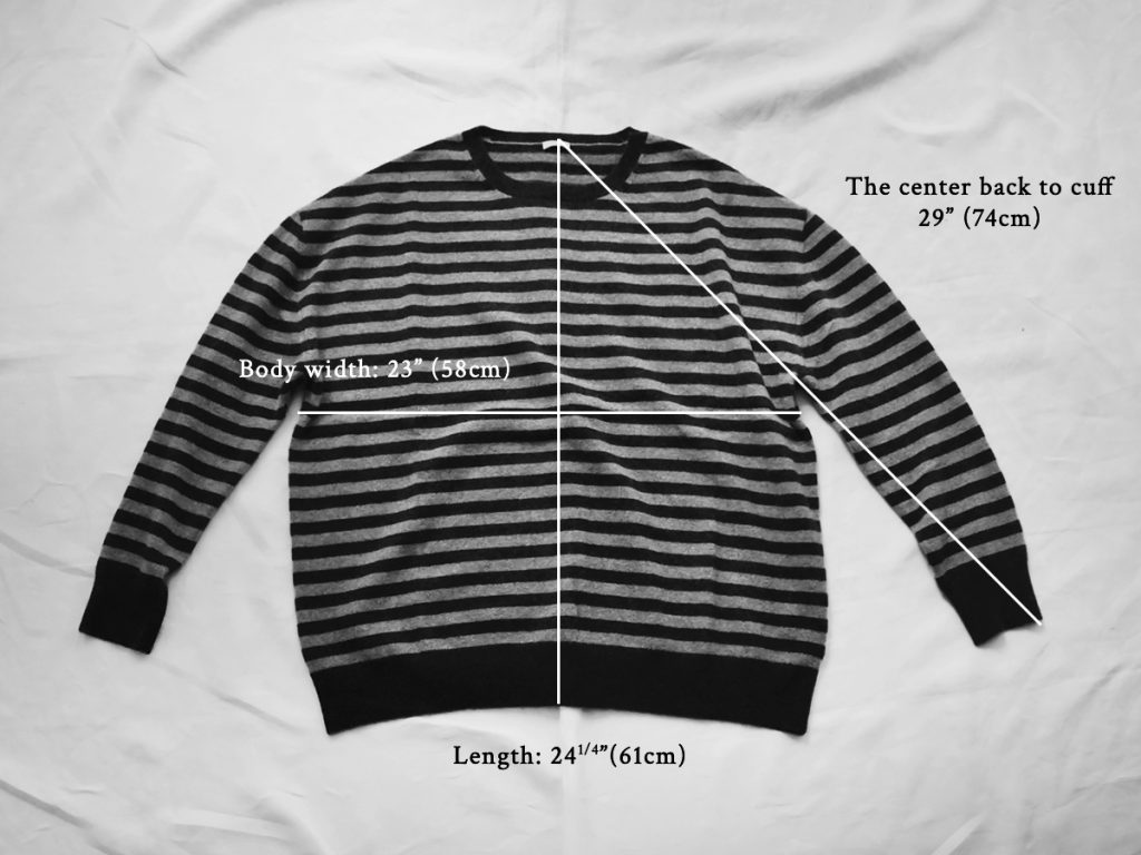 Size: The center back to cuff 29″ (74cm), Body width 23″ (58cm), Length 24¼” (61cm)
