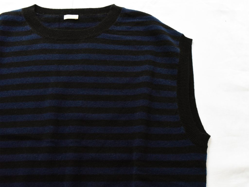MAKIE, Cashmere Vest – Navy x Black Stripe