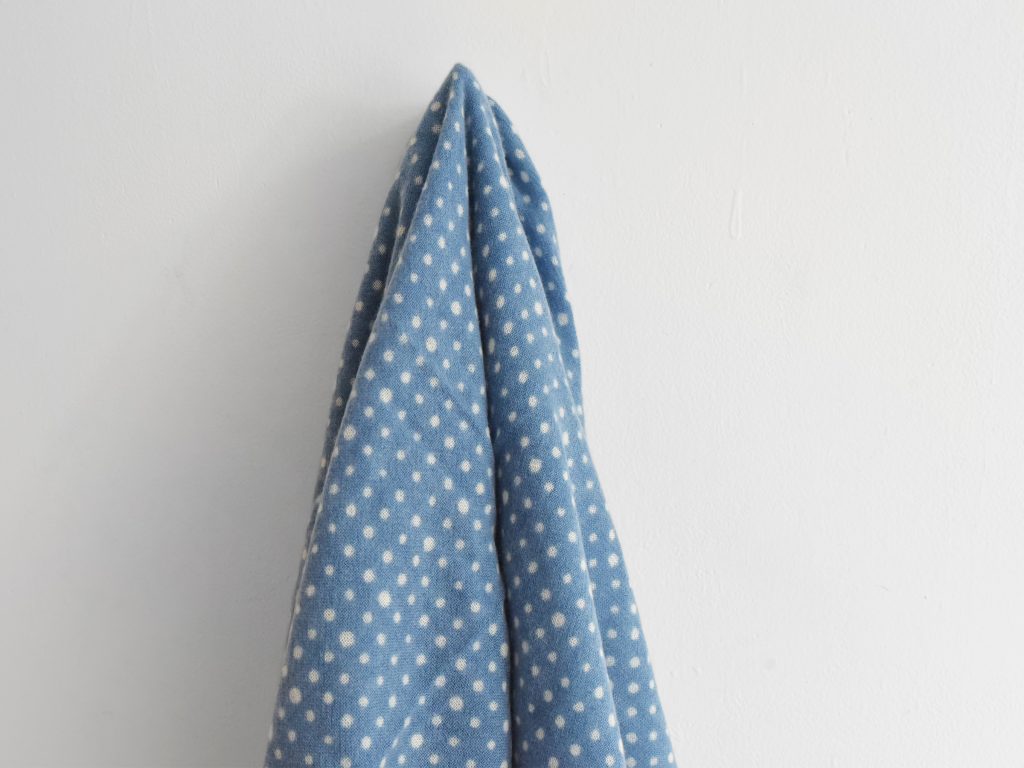 MAKIE, Polka Dot Cashmere Square Scarf – Blue x Ivory