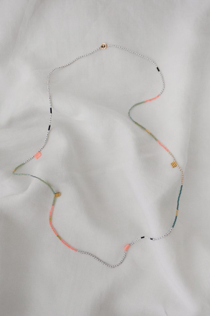Maribel Bisbal is a jewelry designer based in New York. She specializes in creating delicate necklaces and bracelets using micro beads.