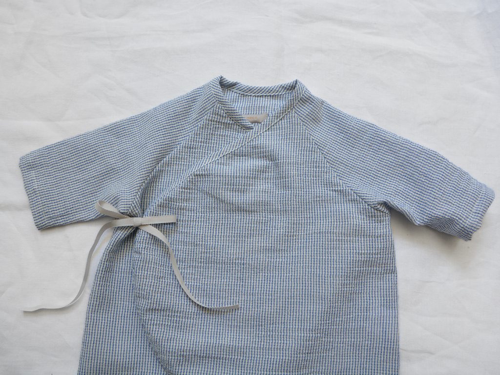 Simple and delicate Hadagi, a gender neutral baby kimono onesie for newborn to 12-month-old baby.