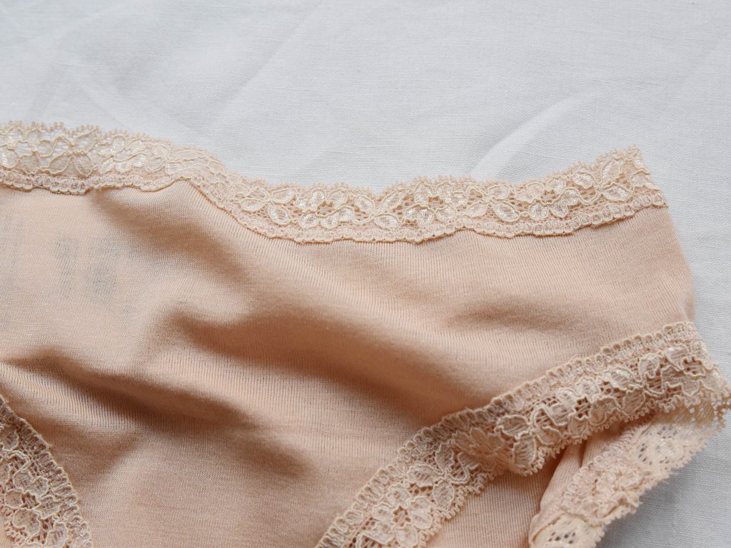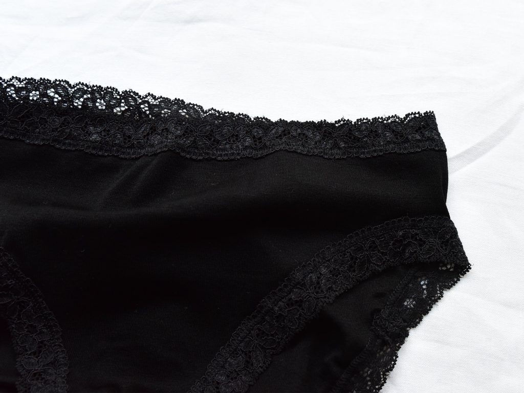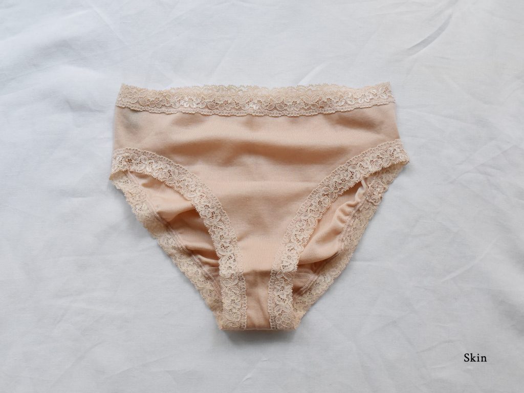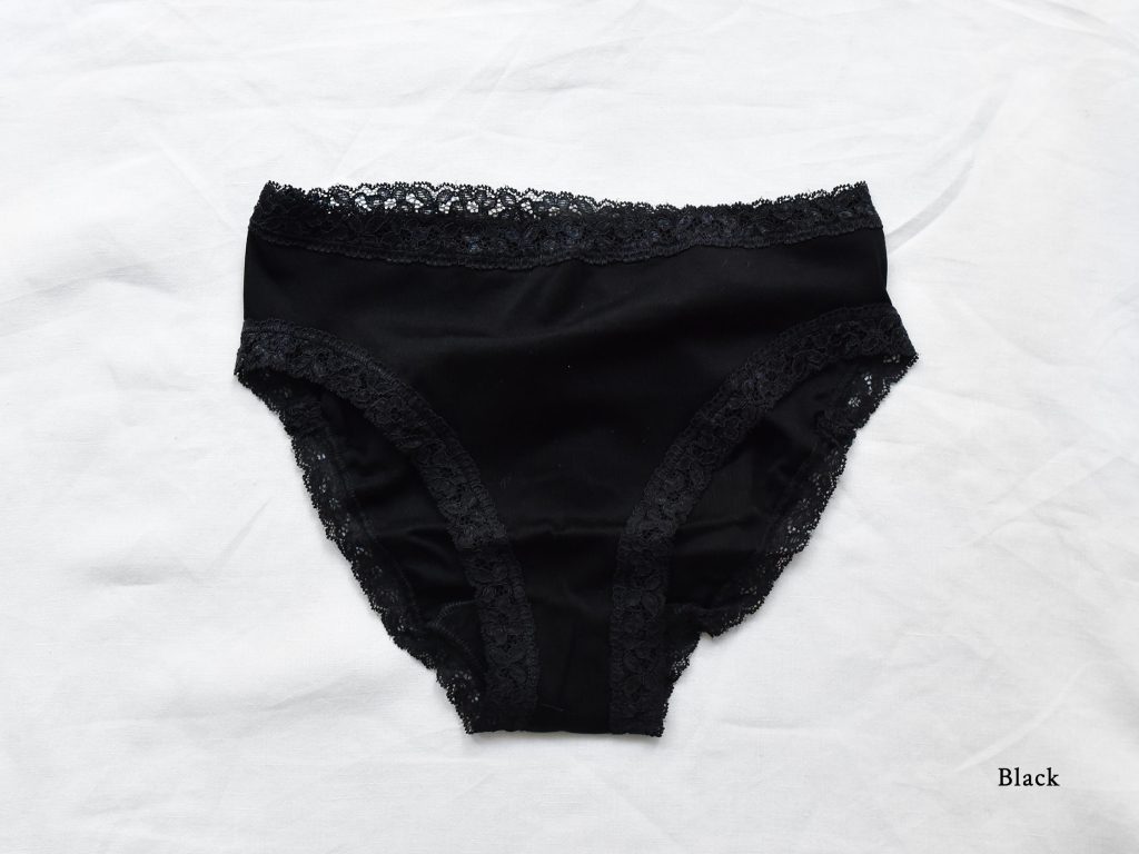 “Midi Brief made of the finest flat knit fabric in pure Egyptian Makò mercerized Cotton (Filoscozia®) with a gorgeous and feminine French leavers lace, certified and numbered as true “Dentelle de Calais®”. No side seams construction, lace across waistline and legs, super-soft, comfortable and light touch for your second skin everyday.” (www.oscalito.us)