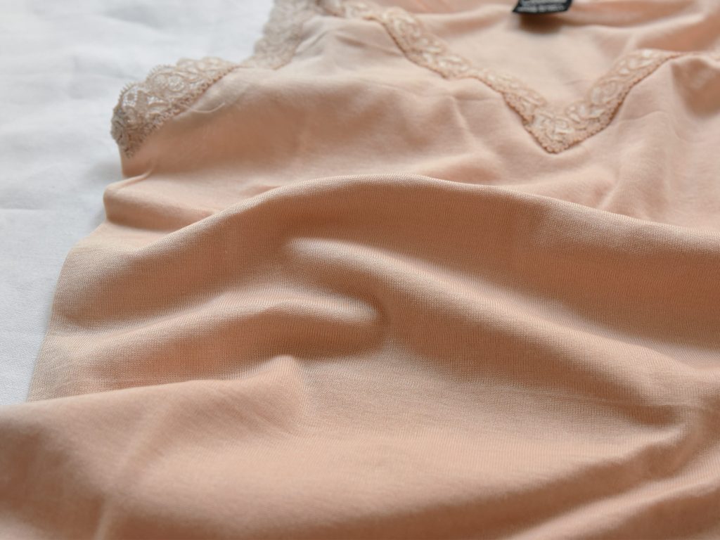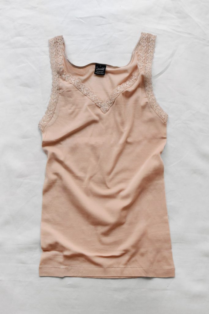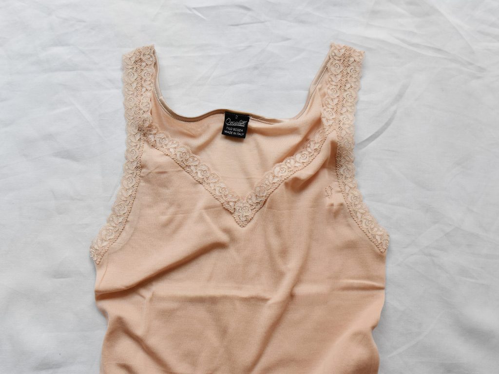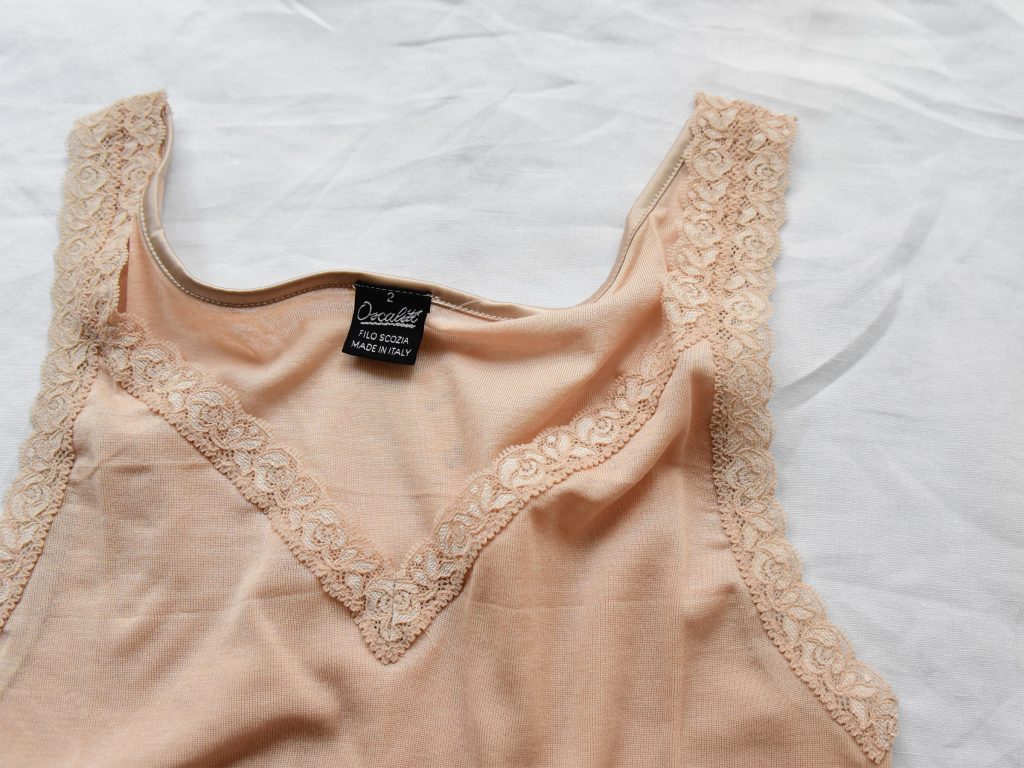 “Made of the finest flat knit fabric in pure Egyptian Makò mercerized Cotton (Filoscozia®)with a gorgeous and feminine French leavers lace.” (www.oscalito.us)