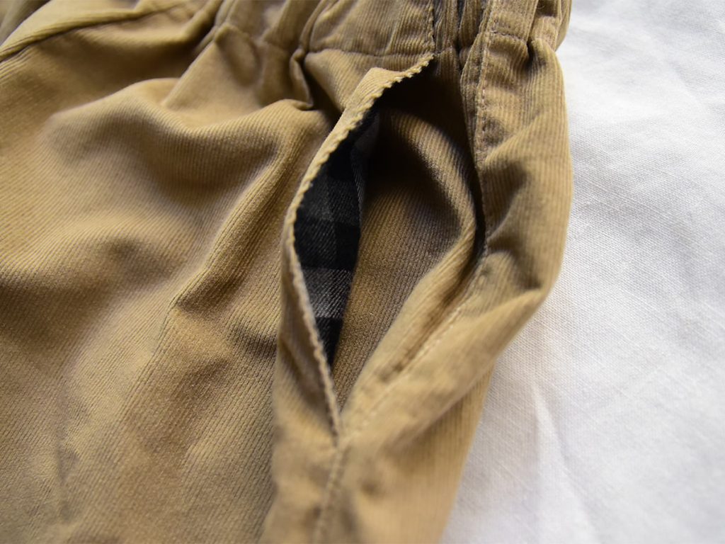 Two side pockets. One back pocket. Lightweight corduroy fabric makes it suitable for all-season wear.