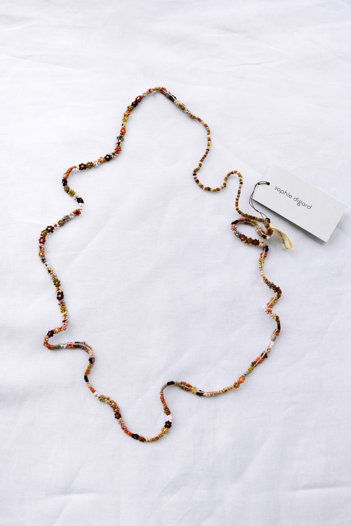 Sophie Digard’s collection are exquisite raffia bags, merino wool tote bag, handmade necklaces, crochet scarves and one of a kind dolls. Sophie Digard is a Parisian knitwear designer. She began her enterprise in 1999. Fibers made and dyed to her specifications in France are shipped to her workshop in Madagascar where they are hand crocheted, knitted and embroidered into unique works of art.